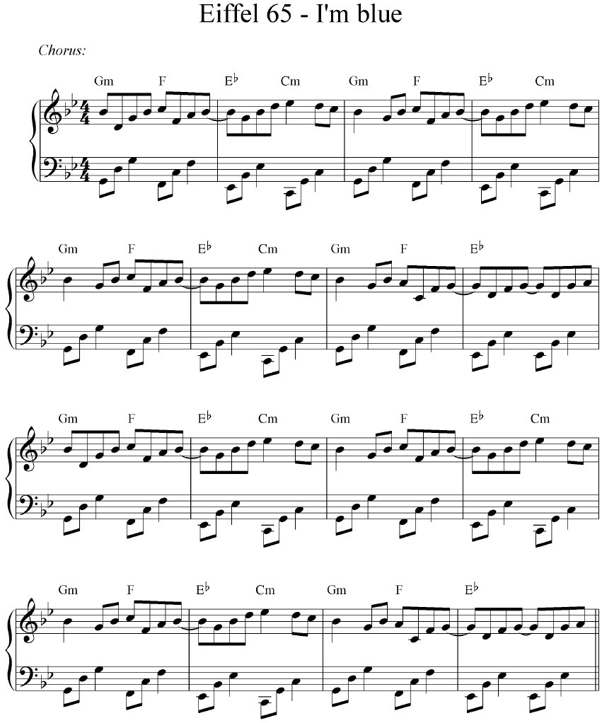 Blue Da Ba Dee Eiffel 65 Sheet Music For Piano Solo Musescore Com