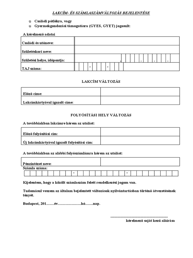 Valtozas Bejelentes Cim Szamlaszam Utalas Modositasara Pdf