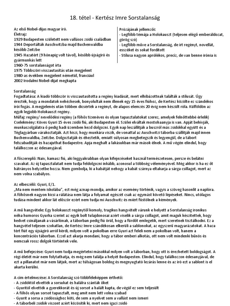 18 Tetel Kertesz Imre Sorstalansag