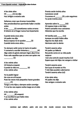 7 Years Spanish Song Lyrics And Activities Kevin Vasquez Musica